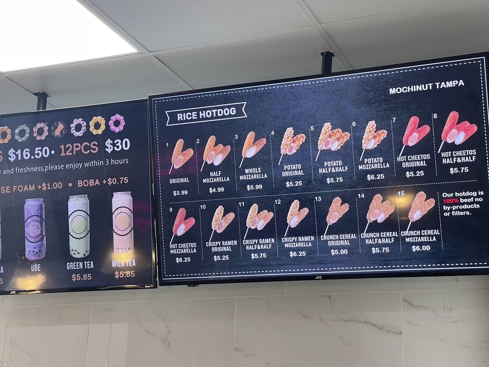 Welcome to MOCHINUT Tampa, a vibrant spot where unique culinary delights await. Located in Temple Terrace, this eatery specializes in rice hot dogs and mochi donuts, each crafted to tantalize your taste buds. The Original Half & Half Rice Hotdog, featuring a juicy beef hotdog encased in gooey mozzarella, offers a harmonious blend of flavors for just $6.50. Pair it with their refreshing boba drinks, like the decadent Brown Sugar or the fruity Strawberry Milk, both priced at $7.50.